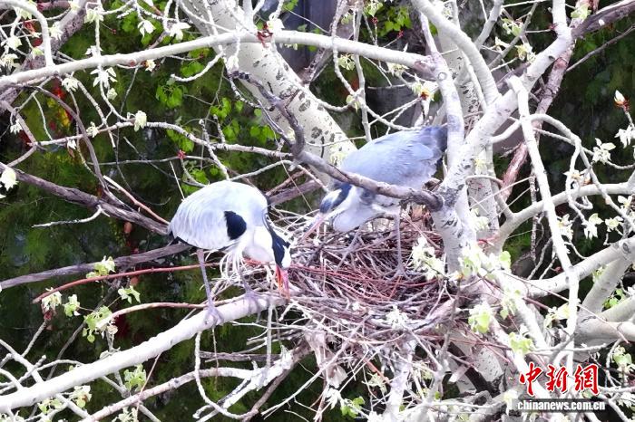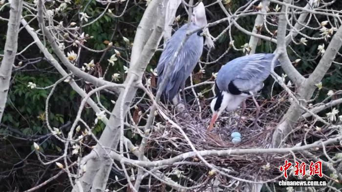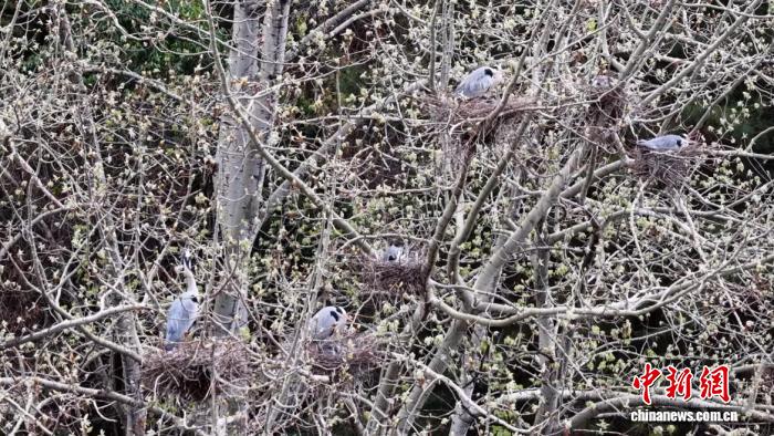 甘肃陇南市白龙江畔苍鹭孵育忙