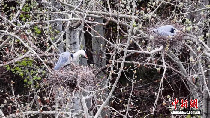 二月季节,正在苦肃省陇北市黑龙江干,邦家“3有”珍爱植物苍鹭入进了繁育顶峰期。殷冬 摄